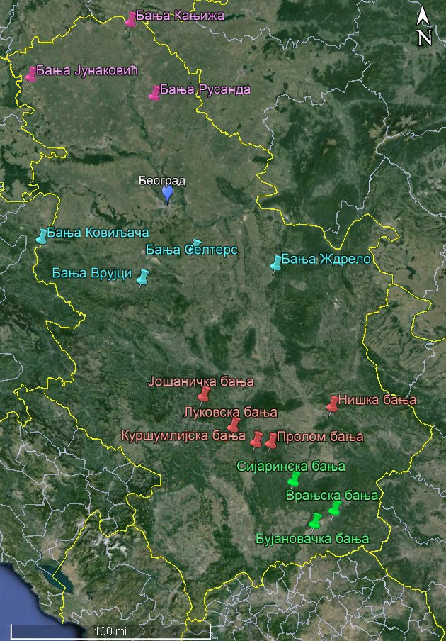 U okviru PELAS projekta biće analizirani peloidi koji se koriste u banjama sa slike: