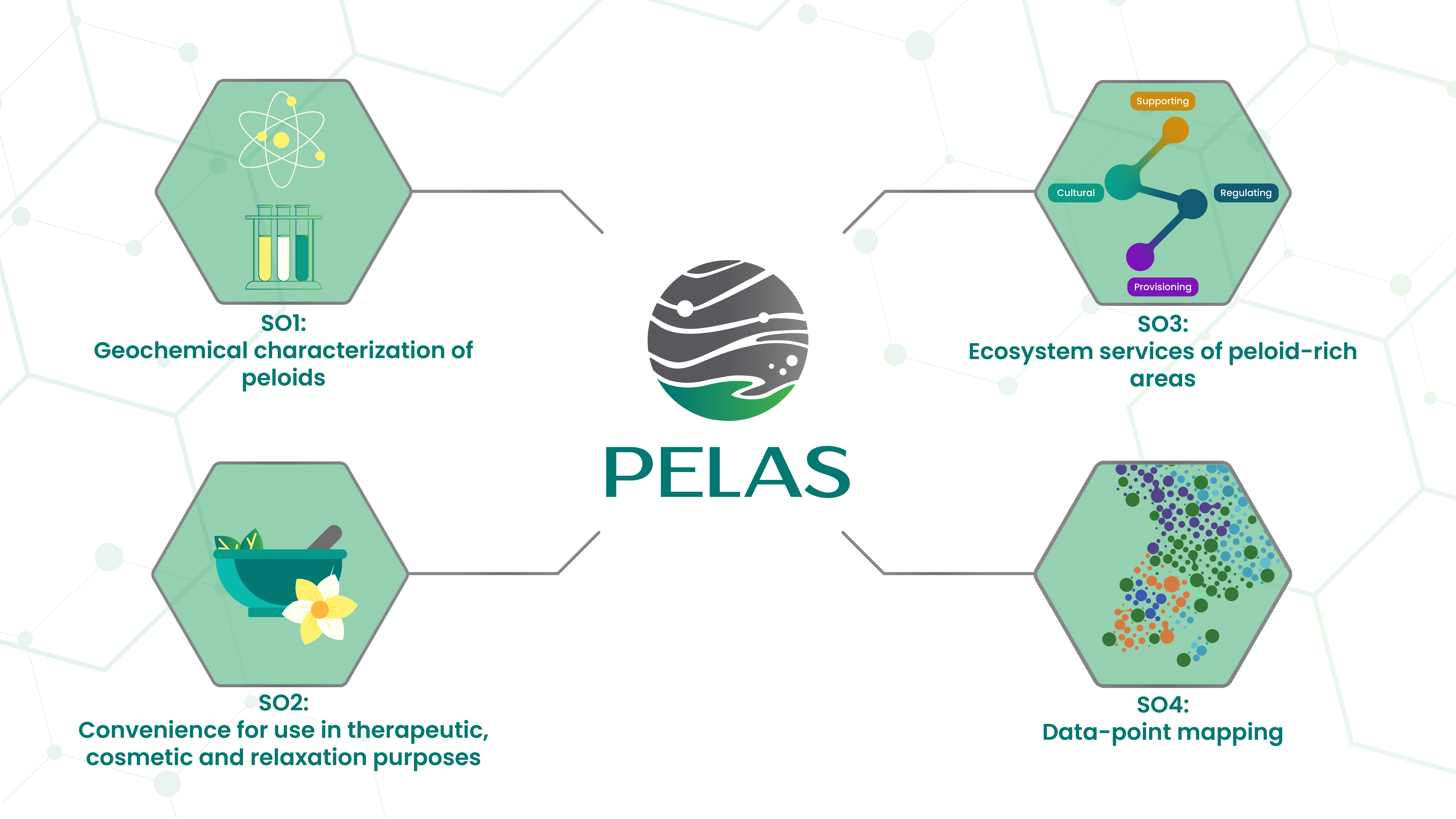 Opšti cilj PELAS projekta je detaljna fizičko-hemijska, geohemijska i eko-hemijska karakterizacija peloida koji se koriste u banjama Srbije, iz tri glavna razloga: utvrđivanje svojstava peloida, procena njihove podobnosti za upotrebu I procena ekosistemskih usluga banjskih područja.